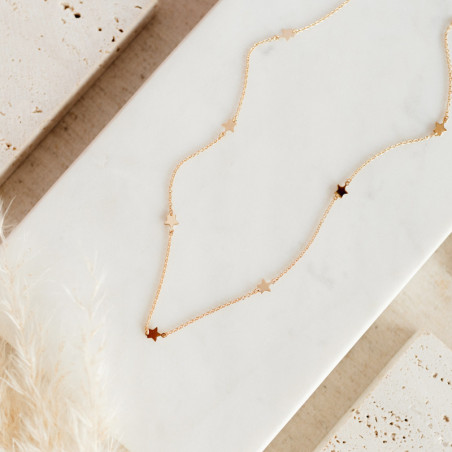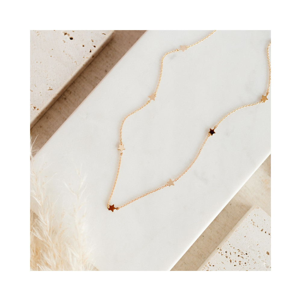 〰️Collar con estrellas de 5 puntas recorriendo toda la cadena. Mide 47cm y tiene tres posibilidades de largo, 42, 44,5 y 47 cm.