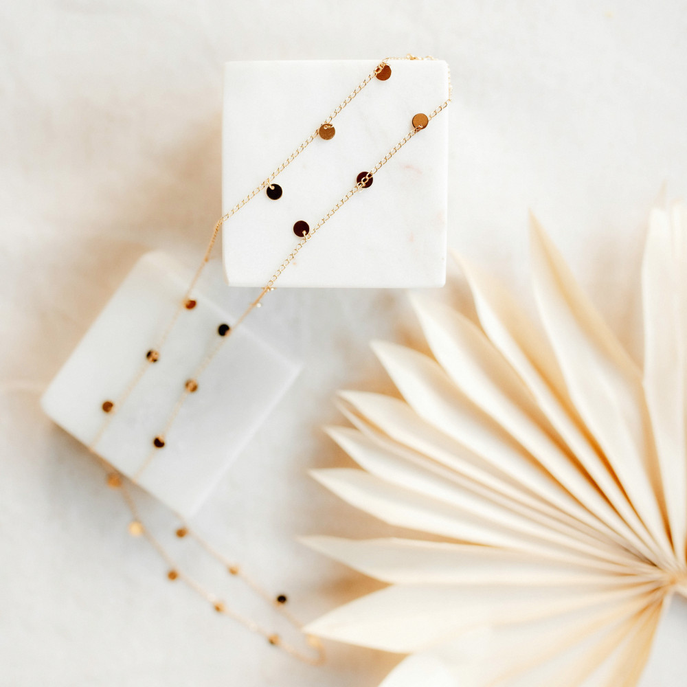 Carolina es un collar largo alegre y sofisticado. Nos encanta su brillo y su luz. Queda estupendo combinado con múltiples collares, aunque también nos encanta en su versión en solitario. Puedes darle doble vuelta para ponerlo en formato corto. Nuestra astucia: póntelo por dentro del escote para que resulte sugerente.