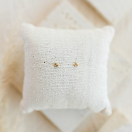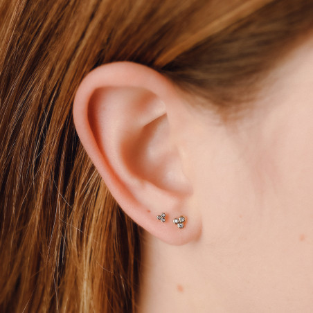 〰️Pendiente miniatura con 3 circonitas y con cierre a presión. Mide 0,4 cm de ancho. Acabado brillante.
