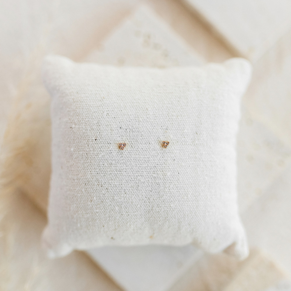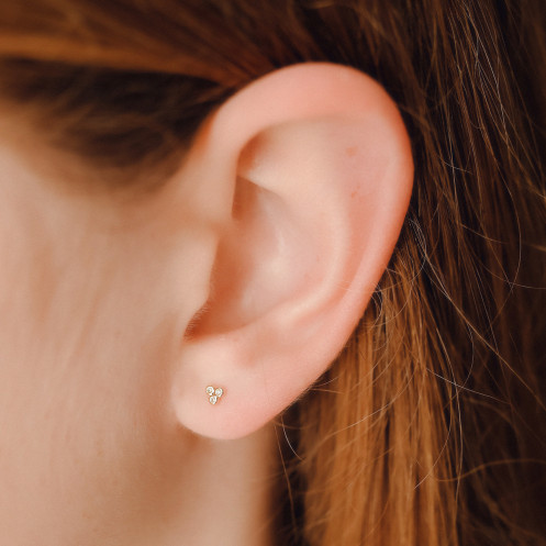 〰️Pendiente miniatura con 3 circonitas y con cierre a presión. Mide 0,25 cm de ancho. Acabado brillante.